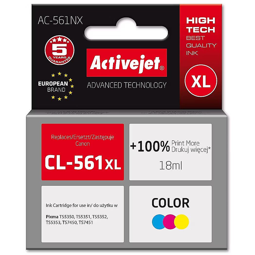 ActiveJet AC-561NX Printer Ink for Brother, Replacement Canon CL-561XL; Supreme; 18 ml; Color