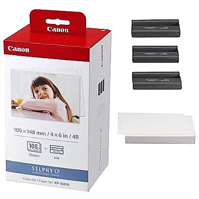 Canon KP-108IN Colour Ink Cartridge with 108 Sheets postcard size (100 x 148mm) paper (for CP-100/200/220/300/330/400/500/510/600/710-770) NEW